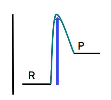 Q6.In which energy profile, does the blue arrow show the energy change of a exothermic reaction?