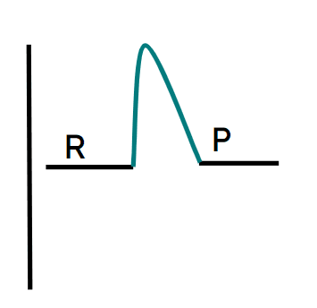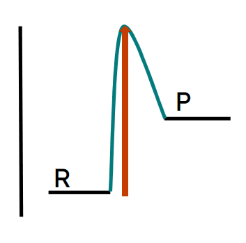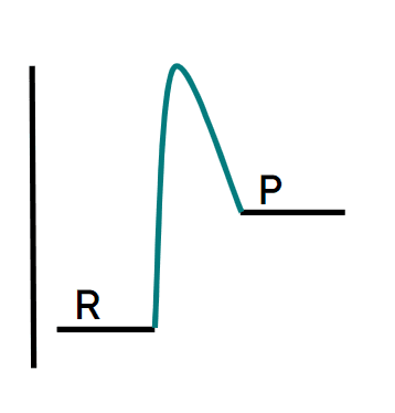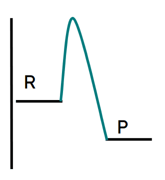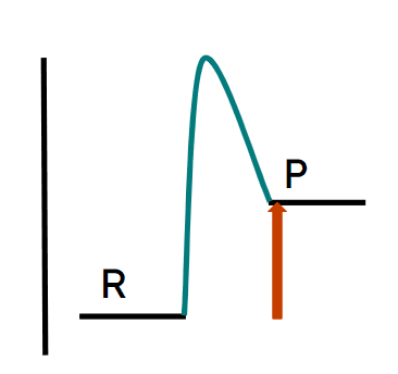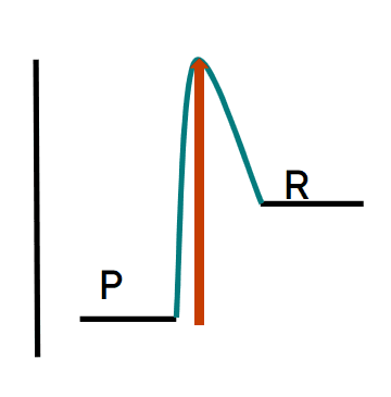 Q3.Which of the following reaction profiles correctly represents the activation energy of the reaction with a red arrow, and where R is the reactant and P is the product?