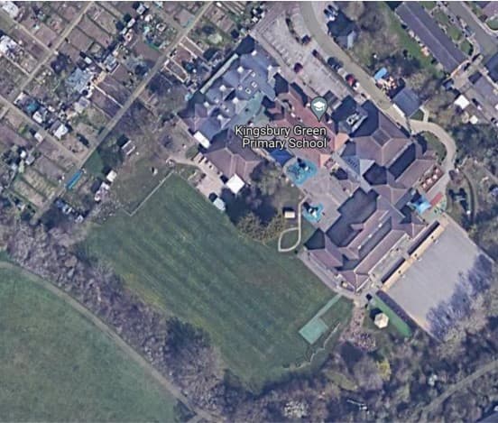 - Aerial images and large-scale maps show the main features of a place, e.g. the school grounds.