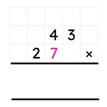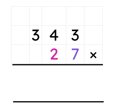 Q6.Sam shuffles some cards and arranges them into a long multiplication algorithm. Use this to calculate the product.