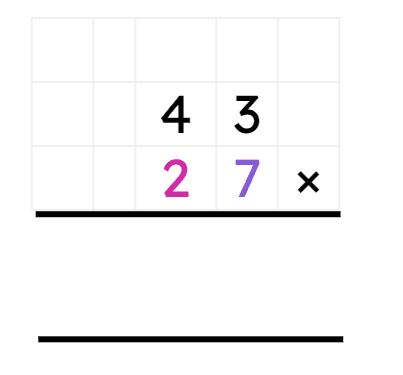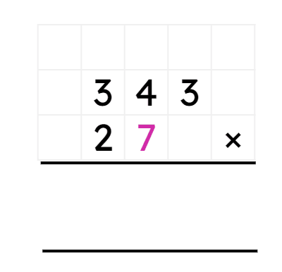 Q3.Look at the long multiplication below, how many tens have been regrouped? tens