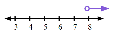 Q4.Which of these represents all solutions to the inequality $$8<4(x-3)$$ ?